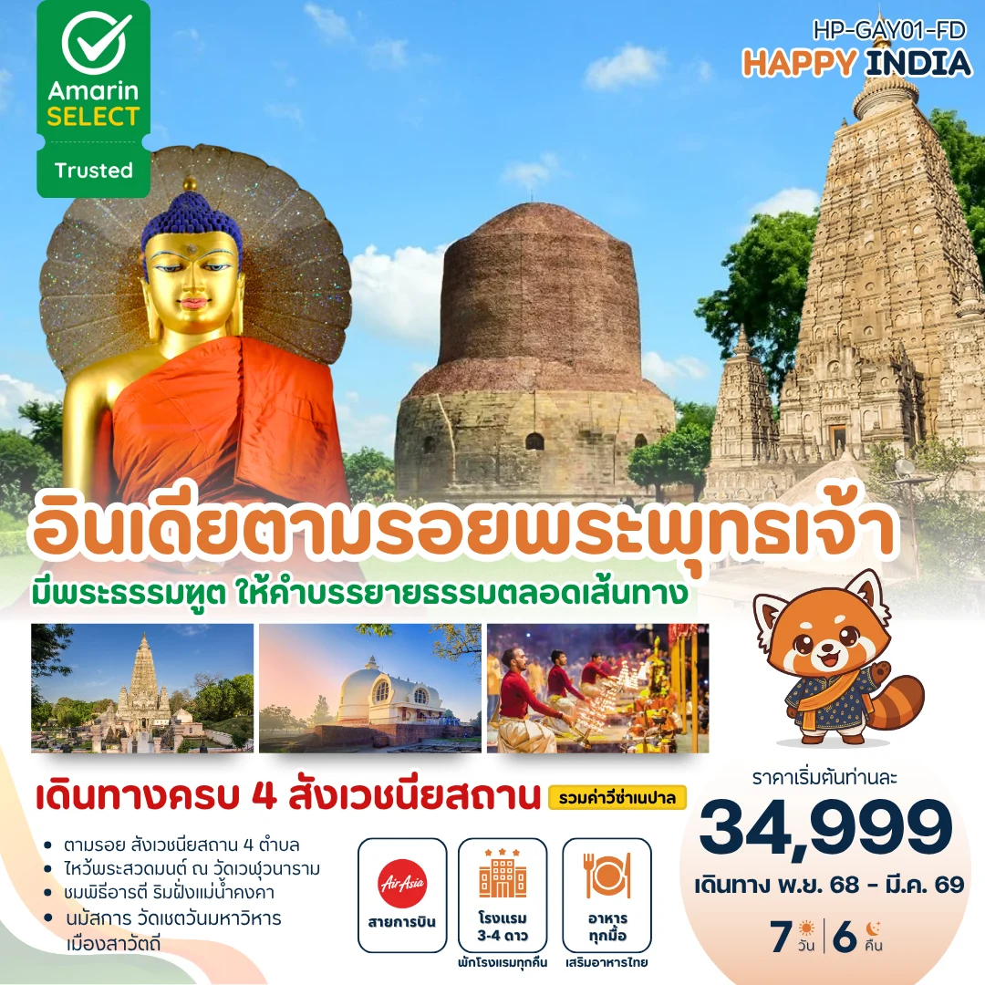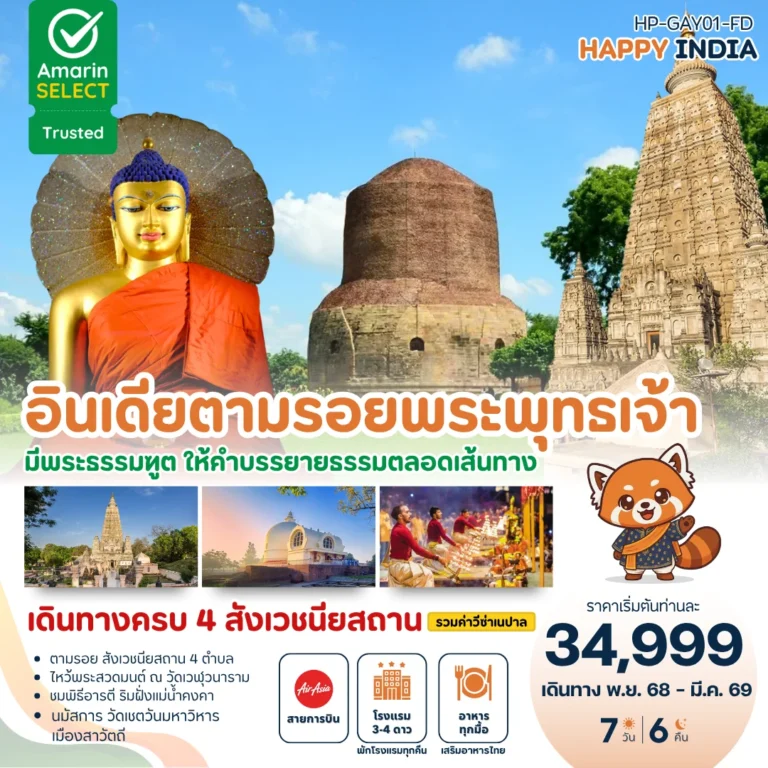 แฮปปี้ อินเดีย ตามรอยพระพุทธเจ้า 4 สังเวชนียสถาน 7 วัน 6 คืน